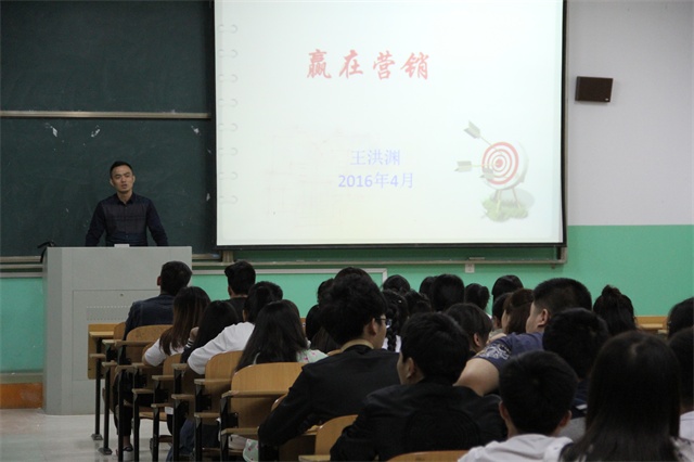 4月14日晚上19:00,《赢在营销》专题讲座在学院综教楼107阶梯教室如期举行。本次讲座由省职协创始人之一的高级职业经理人王洪渊先生主讲,学院市场营销和电子商务专业的师生共计一百余人聆听了本次讲座。