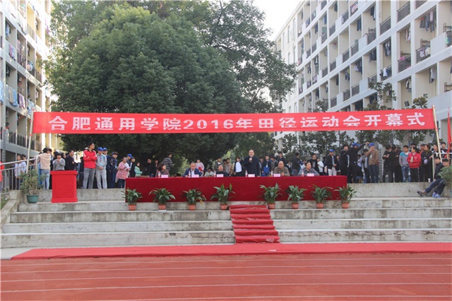 2016年11月3日上午,合肥通用职业技术学院2016年田径运动会在学院运动场隆重开幕。学院院长、党委副书记张志勇,党委副书记、副院长田启昌,副院长李爱民、江道银,院长助理邵刚、薛晓妹出席了本次开幕式。开幕式由江道银副院长主持。