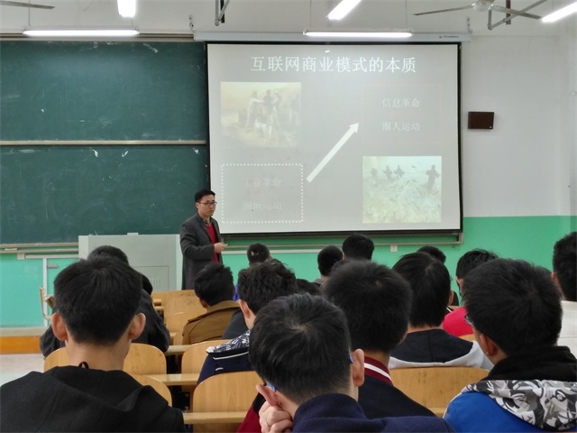 2016年11月15日下午,应我院邀请,安徽城市管理职业学院电子商务教研室主任王锐在教学楼107教室做了《基于互联网思维下的大学生创业教育》专业讲座。
