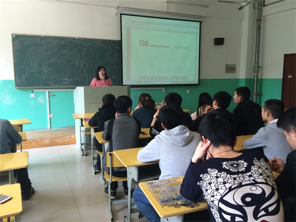 动员会上邓老师针对本期无损检测培训取证项目参加取证的条件、需准备的材料等方面给学生做了详细介绍。培训取证期间,省特检院将牵线为我院学生举办一次无损检测用人单位与学员的“双选会”,为我院毕业生提供专业对口的顶岗实习单位和就业单位。