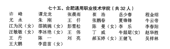 近日,安徽省教育厅和安徽省人力资源和社会保障厅根据《安徽省普通高等学校品学兼优毕业生评选办法》,在各高校推荐的基础上,经过认真审核和研究,决定批准吴美娟等8627位同学为“2017年安徽省普通高等学校品学兼优毕业生”(皖教学[2017]1号),我院许峰等32位同学获批,具体名单如下: