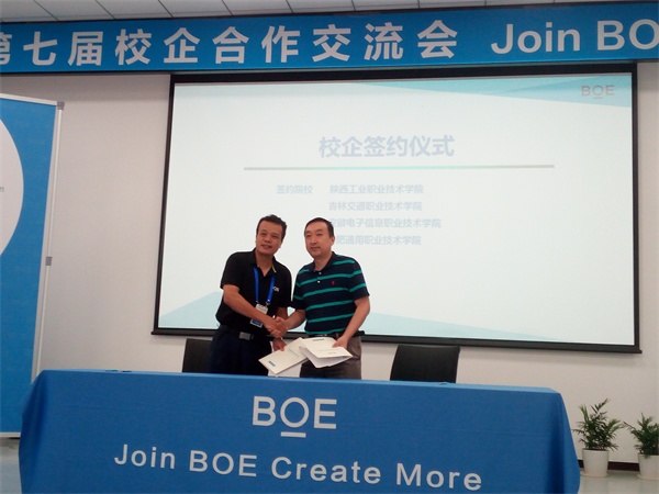 研讨结束后,举行了校企合作协议签约仪式。院长助理邵刚代表学院与京东方科技集团股份有限公司签署了校企合作协议。根据协议,我院将与京东方集团合作设立京东方班,同时在京东方科技集团合肥事业部挂牌设立合肥通用职业技术学院大学生校外实习实训基地。
