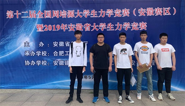 5月19日,由安徽省教育厅主办,合肥工业大学、合肥学院、安徽省力学学会承办的第十二届全国周培源大学生力学竞赛(安徽赛区)暨2019年安徽省大学生力学竞赛在安徽建筑大学举办,经过三个半小时的角逐,我院学生刘可付、王成梦获得个人三等奖。