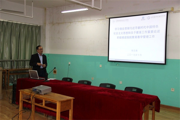 10月30日下午,我院党委召开“不忘初心、牢记使命”主题教育专题党课报告会。我院主题教育领导小组组长、党委书记张志勇以“学习领会贯彻习近平新时代中国特色社会主义思想和关于教育工作重要论述,积极推进我院教育教学管理工作”为题,做专题党课报告。党委副书记、院长田启昌主持会议,我院党政领导及全体党员、职工参加报告会。
