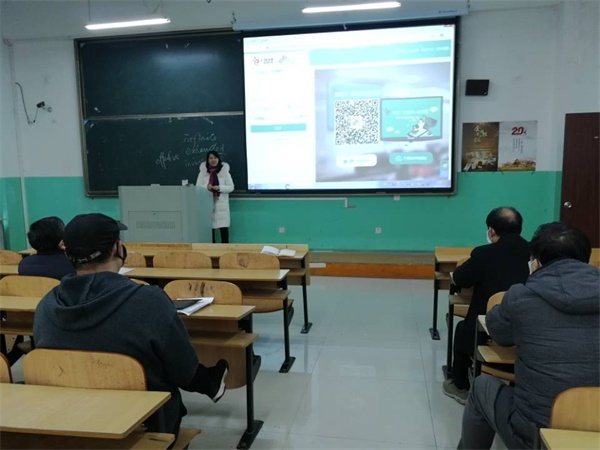 教务处长蒋腊芳围绕在线教学的整体实施方案、教学平台使用、各系在线课程学习安排、教师教学和学生学习情况的反馈、学习效果、后续线上教学工作计划等方面做了详细的汇报,并在多媒体教室登录智慧职教平台演示了我院线上教学的应用情况,调取了全院线上教学各项行为数据。