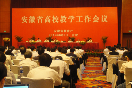 2012年6月3日,安徽省高校教学工作会议在肥顺利召开。会议由安徽省教育厅主办,来自安徽省各普通高校校(院)长、分管教学副校(院)长、教务处处长;独立设置的成人高校负责人、教务处处长;独立学院主要负责人以及省教育厅相关处室和直属事业单位主要负责人等近400名代表参加了会议。教育部高教司司长张大良、高教司综合处处长韩筠出席了本次会议。