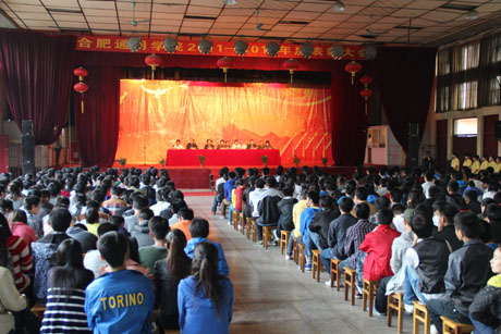 10月18日,我院2011—2012年度学生工作表彰大会在大学生活动中心隆重举行。学院院长、党委副书记束蓓;副院长、副书记田启昌;副院长黄蕾;院长助理李爱民,邵刚,陈立,江道银,薛晓妹及各系党政负责同志出席了大会。大会由学生处副处长安忠猛主持。