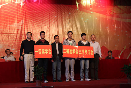 表彰大会在庄严的国歌声中拉开帷幕。院长助理兼学生处处长陈立宣读了《关于表彰我院2011—2012学年获得学院奖学金、优秀学生干部、先进班集体的决定》;院党委副书记、副院长田启昌宣读了学院2011-2012学年获得普通高等学校国家奖学金、国家励志奖学金名单。在2011—2012学年学风建设中,全院共评出先进班集体9个,奖学金获得者614名,三好学生74名,优秀学生干部140名。