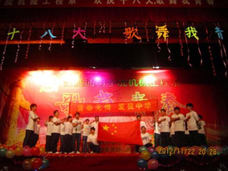 为庆祝党的十八大胜利召开。11月22日晚19:00,学院机械工程系在大学生活动中心隆重举办了“欢庆十八大· 歌舞我青春”大型文艺晚会。院长助理、机械系党总支书记薛晓妹;信息管理工程系党总支书记徐世影;中国联通合肥分公司庐阳区营销中心总经理汪小华;中国联通合肥分公司庐阳区营销中心主任芮美丽;中国联通合肥分公司庐阳区营销中心校园推广经理李想;机械工程系团总支书记刘祥及部分辅导员老师出席并观看了晚会。