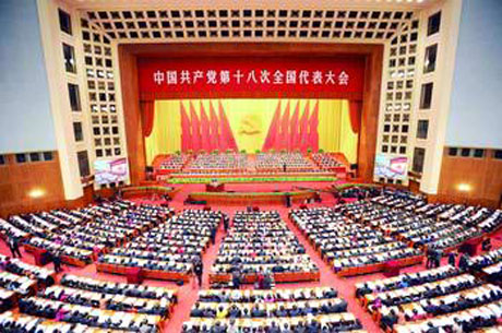 胡锦涛在报告中说,中国共产党第十八次全国代表大会,是在我国进入全面建成小康社会决定性阶段召开的一次十分重要的大会。大会的主题是:高举中国特色社会主义伟大旗帜,以邓小平理论、“三个代表”重要思想、科学发展观为指导,解放思想,改革开放,凝聚力量,攻坚克难,坚定不移沿着中国特色社会主义道路前进,为全面建成小康社会而奋斗。