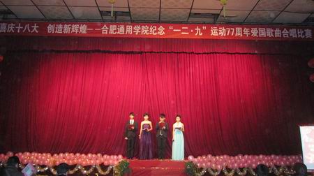 传唱革命爱国歌曲,继承红色革命精神。本次活动让同学们重温了历史,同时唤起了大家的红色记忆。活动不仅展示了我院大学生的良好精神风貌,同时也激发全体学生为中华民族伟大复兴而发奋读书的崇高理想和青年大学生为建设美好安徽、和谐校园做出新的贡献的信心。