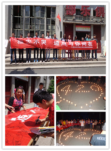 2013年4月20日,四川雅安市芦山县发生7.0级强烈地震,灾区人民的生死安危,紧紧揪着亿万国人的心。4月27日,我院大学生就业与创业协会分别在俱乐部和主楼广场举办了爱心签名和烛光祈福系列活动为雅安祈福。本次活动得到了院团委和各大社团的大力支持。希望通过此次活动能够将祝福传递到雅安,缅怀逝者,祝福生者。