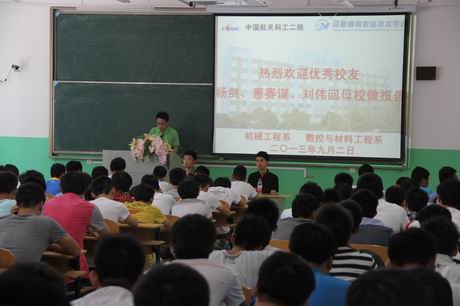 9月2日下午,杨剑、惠赛谋、刘伟同学在107教室面向数控技术、机电一体化专业200余同学举行了一场别开生面的报告,分享了个人学习、成长、工作经历,对学弟、学妹提出了中肯的建议和殷切的希望,鼓励他们努力学习,奋勇拼搏。