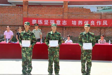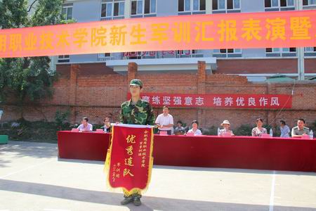 最后学院院长助理、学生处处长、2013军训团政委陈立宣读了嘉奖令,通报表彰在各项军事训练过程中涌现出来的先进个人及团体。院领导向获奖代表颁发了锦旗和奖状。在热烈的掌声中,2013级学生军训总结表彰大会结束,为期九天的军训工作圆满落下了帷幕。