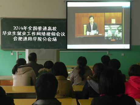 2013年12月6日上午,2014年全国普通高校毕业生就业工作网络视频会议在北京召开,教育部党组书记、部长袁贵仁出席会议并讲话,教育部党组副书记、副部长杜玉波主持会议。我院院长束蓓,院长助理、实训中心主任邵刚,就业工作办公室主任谭丽娅及就业办全体成员,各系党总支书记以及负责就业工作的全体辅导员在学院综合大楼301教室分会场参加了会议。