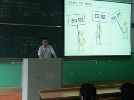 讲座伊始,王经理谈到同学们离开学校进入企业单位,首先要明白学校、学生、用人单位是什么关系。王经理指出,用人单位是学校的用户,学生是学校的产品,学校的学生这个产品,经过三年的“加工制造”,最终要“销”往用人单位,产品质量如何,是优质品、合格品还是次品、废品,都要由用人单位来检验。随后,王经理从三个方面为同学们讲解如何做一个优秀员工。