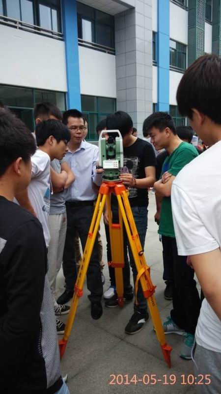 讲座中,张熬总经理给同学们介绍了水准仪、经纬仪、全站仪及GPS定位仪的组成、功能及各种仪器在实际中的操作的注意事项,并带领同学们到室外进行实际操作演练。