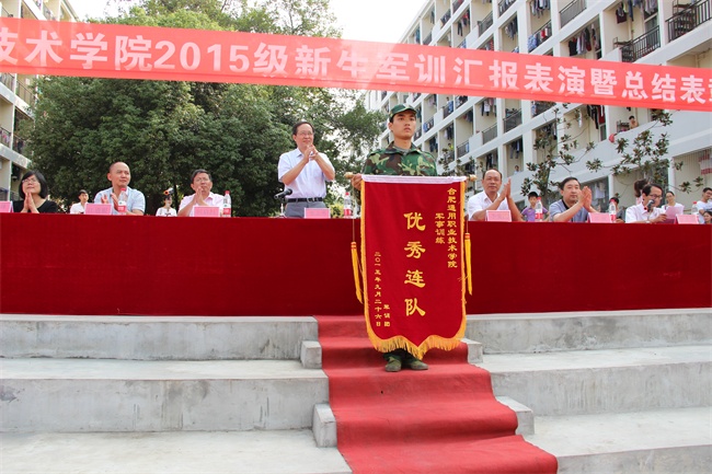 最后,学院院长张志勇同志发表讲话。张院长首先代表学院领导班子,向全体受训的同学们以及荣获表彰的单位和个人表示诚挚的敬意和祝贺;向认真细致、尽职尽责的全体军训教官们以及精心组织、细致安排的学生处、团委、各系部的老师、辅导员们、各管理部门的员工们表示衷心的感谢。张院长向全体2015级新生同学们提出了殷切的希望和要求。他要求同学们能够:巩固成果,昂扬向上;志存高远,脚踏实地;修身立德,学会做人;热爱生活,保持健康。军训生活锻炼了同学们的体魄与技能,磨练了同学们的意志与品质,让大家养成了良好的生活、学习习惯,张院长希望大家能够一如继往地保持这种精神和习惯,固化成为未来做人、做事、学本领、成事业的优良品质,用这种品质去雕琢和实现自己的青春梦想。最后,张院长赠送给全体同学们一条青春寄语:“劳动创造财富,勤奋获取丰收,追求实现理想,过程享受幸福。”