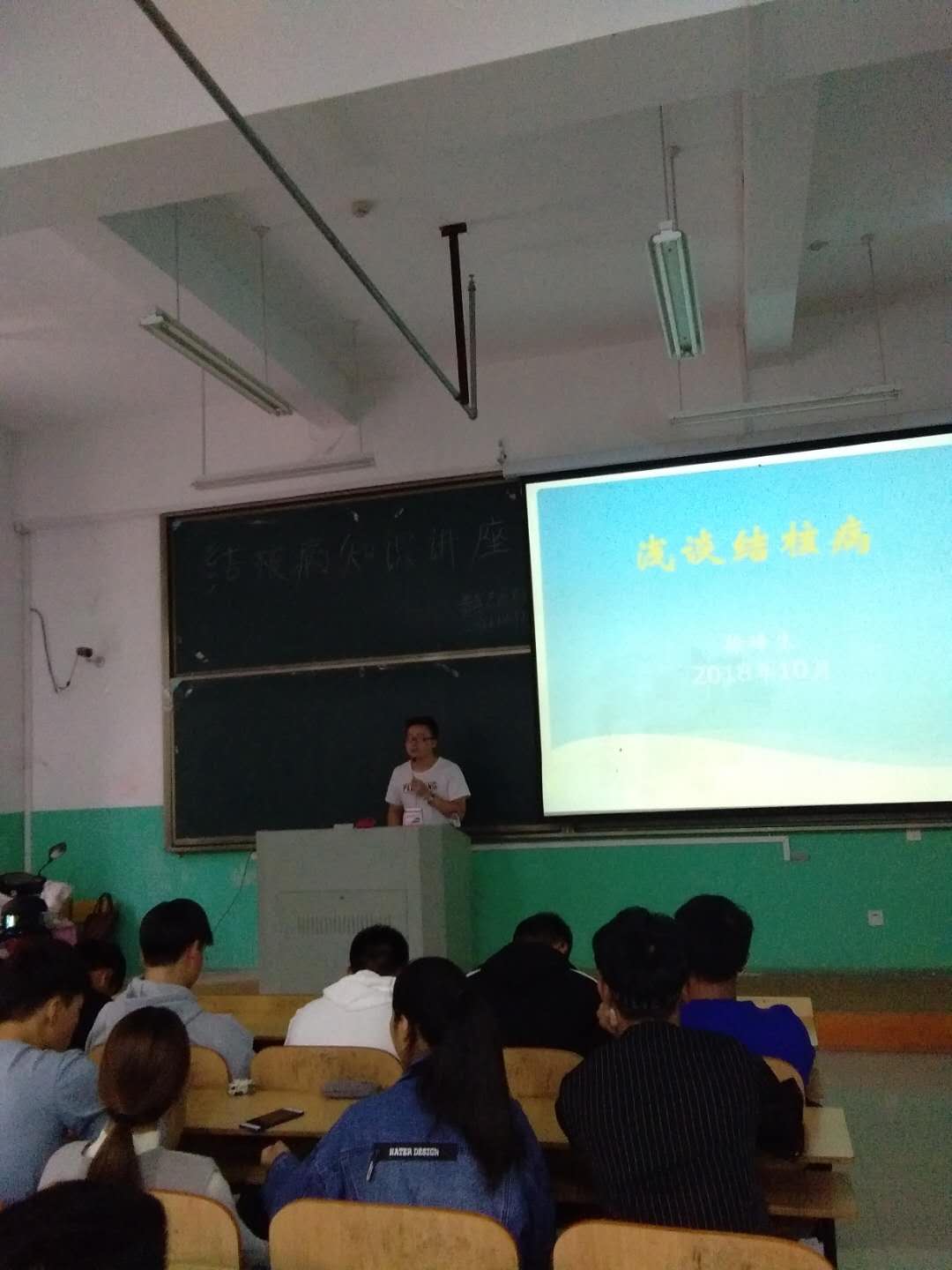 当天下午教学楼101教室座无虚席,来自我校各个年级、各个专业的近200名学生代表聆听了此次主题为“浅谈结核病”的知识讲座。