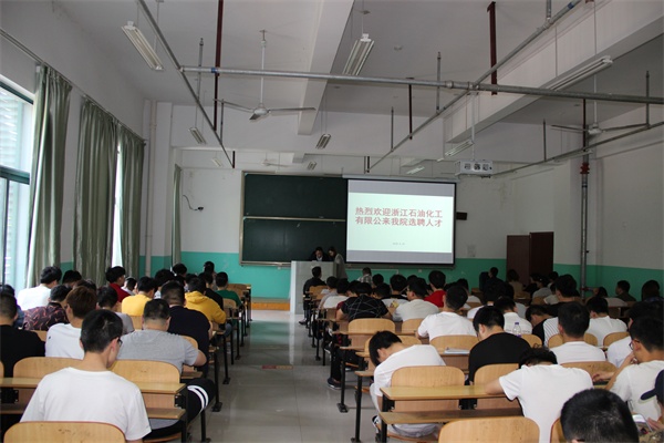4月18日下午,浙江石油化工有限公司校园招聘专场宣讲会在我院综教楼101教室举行。我院机电一体化技术、电气自动化、安全技术与管理、机械产品检验检测技术等相关专业近200名学生参加了宣讲会。就业办以及各系相关专业辅导员也到场旁听了宣讲会。浙江石油化工有限公司监事、人力资源部经理李红良向到场的同学们详细介绍了公司的发展历程和规划远景以及招聘岗位需求并对我院相关专业的毕业生发出了诚挚的邀请。在宣讲结束后的互动环节,不少同学就自己感兴趣的问题进行了提问,企业相关部门负责人进行了解答,现场气氛热烈。