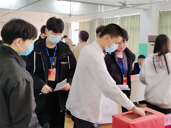 与会代表投票、差额选举产生大会2023届院学生委员会委员和2023届学生会主席团成员。