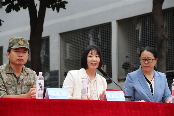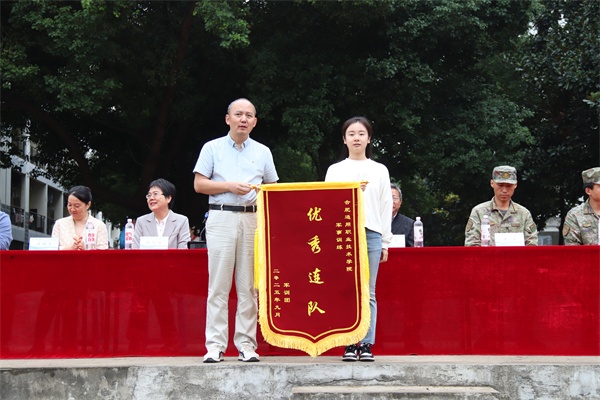 副院长肖艳君宣读嘉奖令,表彰在军训中表现突出的教官、学生及集体,激励全体新生对标榜样,昂扬启程。
