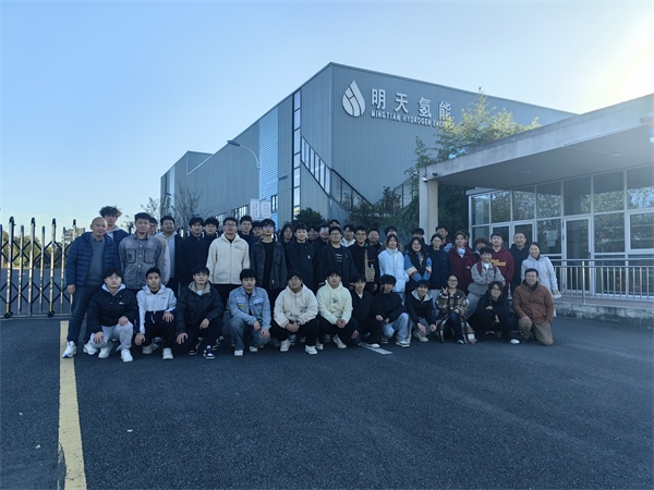 2025年11月18日下午,合肥通用职业技术学院氢能2401班全体学生在院长江道银、院长助理邵刚及两位专任教师带领下,前往安徽明天氢能科技股份有限公司(以下简称“明天氢能”)开展专业认知实习活动。此次实践教学旨在深化学生对氢能产业链的直观理解,推动校企合作与产学研深度融合。