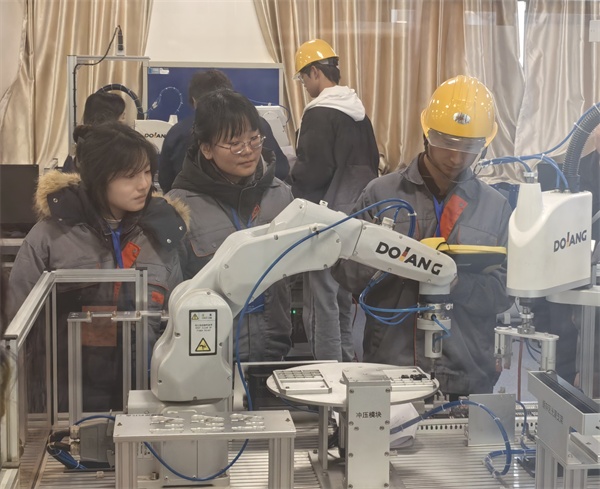 2025年11月25日,合肥经开区人才发展共享平台人力资源“蓄水池”智能制造技能大赛成功举办。我院电气与信息工程系工业机器人专业2024级学生吴雪、李欣怡、陈志壮,在冯利华老师的指导下荣获工业机器人赛道“智能先锋团队奖”。