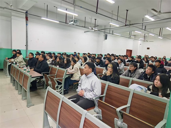 检测院副院长何松、院长助理谢鸿玺一同来学院参加招聘宣讲活动,学院党委书记田启昌、副院长肖艳君出席活动,学院相关系部负责人及辅导员老师参加活动。