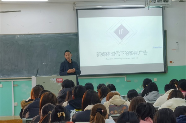 面向创意与传媒领域,安徽万千品牌传播有限公司总经理、学院产业教授俞跃为数字媒体技术专业学生剖析了《新媒体时代下的影视广告》,从媒介特征到效果实现,层层递进,为学生连接起课堂理论与行业实践。
