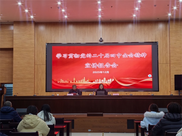 为深入学习领会、全面贯彻落实党的二十届四中全会精神,切实把思想和行动统一到党中央的决策部署上来,12月12日,学院在研发楼三楼多功能厅举行学习贯彻党的二十届四中全会精神宣讲报告会。学院领导班子成员、全体中层干部以及师生党员代表参加了本次报告会。