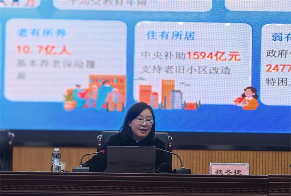 本次报告会特邀安徽省委讲师团高端宣讲专家、安徽中医药大学马克思主义学院魏冬捷教授作专题宣讲报告。魏教授从二十届四中全会的重大成就、历史意义、时代背景、核心要义和实践要求五个维度,结合生动案例和数据分析,对全会精神进行了系统解读。报告内容深入浅出,既有理论阐释,又紧密联系实际,为师生深化理解全会精神提供了专业指导。