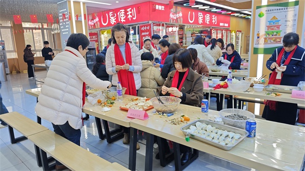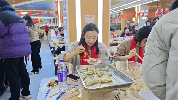 12月19日,合肥通用职业技术学院一食堂内暖意融融,总务(保卫)处在学院一食堂鸿青餐厅举办的“欢聚冬至‘饺’,情融在通用”主题活动拉开帷幕。学院院长江道银、副院长薛晓妹、肖艳君,院长助理凌军、安忠猛、甄君及各系部负责人,带领着各学生小队欢聚一堂,以饺为媒,传承民俗,以食为桥,凝聚温情,让寒冷的冬日因团圆与陪伴而暖意盎然。