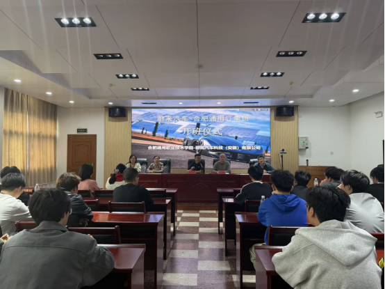 仪式中,蔚来汽车科技(安徽)有限公司工业化校企合作负责人朱肖烈详细介绍了蔚来汽车的发展历程、技术创新成果以及对高素质技术人才的迫切需求,表达了与合肥通用职业技术学院深化合作的坚定信心,并对订单班学生提出了殷切期望。