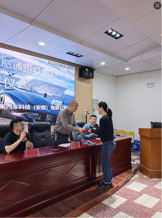 开班仪式的圆满举行,标志着合肥通用职业技术学院与蔚来汽车的校企合作进入了新的阶段。江院长表示,将以此为契机,进一步深化产教融合,不断创新人才培养模式,为区域经济发展和新能源汽车产业升级贡献力量。朱总也表示,将积极为订单班学生提供优质的实践教学资源和就业发展平台,实现校企互利共赢。